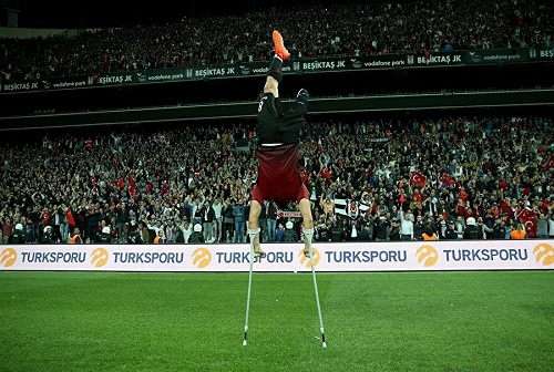 Okul gösterilerinde güzel tepkiler aldım. Ayağım olmadığı halde normal insanlar gibi ellerimin üzerinde yürümenin keyfini yaşıyordum. Çocuklukta her şeyi oyuna döküyorsunuz. Ben de koltuk değneklerimi oyuna dönüştürdüm. Onlarla zıpladım, hopladım. Sokak aralarında, pazarlarda hızlı koşup karşıma çıkan engelleri koltuk değneklerimle slalom yaparak aşmaya çalıştım. Küçükken arkadaşlarım, düşerim diye beni oyuna almazlardı. Karşımdakiler hep beni kısıtlardı. Onlar ‘yapamaz’ dedikçe ben ‘yaparım’ dedim. Kendimi nasıl geliştiririm diye düşündüm ve çalıştım. Hep sıkıntıları ve engelleri aşmak için mücadele verdim. Şu anda bile engelli bakış acısını değiştirmek için elimden geleni yapıyorum. Lise 1. sınıfta öğretmeni Bekir Murat Altıntaş Barış’ın futbolla tanışmasına vesile oluyor. "Normal olan arkadaşlarımın yanında koltuk değnekleriyle maç yapardım. Hocam Türk Silahlı Kuvvetleri Rehabilitasyon Merkezi’nin Karagücü takımına getirdi beni. 2005’ten beri Ampute futbol milli takım formasının heyecanını hala ilk günkü gibi yaşıyorum. Gazi Üniversitesi Beden Eğitimi ve Spor Yüksek Okulu Antrenörlük bölümünü kazandım. Derslerdeki bir çok branşı yapabiliyordum, o zaman protezim de yoktu. Engelli koşu dersinde hocam Hacı Ahmet Pekel, bunun çok zor olduğunu, denememem gerektiğini belirtti. ‘Hocam, ben zaten yıllardır engelli koşuyorum’ dedim ve koltuk değnekleriyle koştum. O gün bana, ‘seni olimpiyatlara hazırlayacağım” dedi. Çok pahalı olduğu için kendi imkanlarımızla protez alamadık. Türkiye Futbol Federasyonu eski Başkan Vekillerinden rahmetli Hadi Neşet Türkmen ilk protezimi yaptırdı. Daha sonra Hülya Avşar olimpiyat sporcularıyla koşmam için ihtiyacım olan profesyonel koşu protezini şubat ayında yaptırdı. Ben de 1 ay içinde rekor kırarak Türkiye Şampiyonu oldum." |