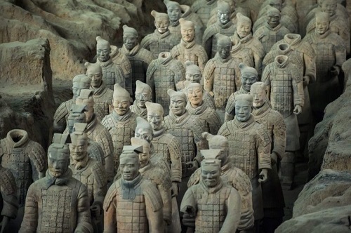 Kilden yapılmış olan 8.000 askerinde hiçbirinin yüzü diğerine bezememektedir.