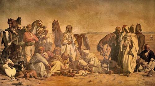 Hidiv (Mısır valisi) Kavalalı Mehmet Ali Paşa’nın torunu, Prens Abdülhalim Paşa’nın büyük oğlu olan Sait Halim Paşa için 1865 yılında yaptırılan bu tablo çerçevesi dahil 4,62x 7,75 metrelik ve 35 metrekarelik boyutuyla dünyanın sayılı eserlerinden biri sayılmaktadır. Mısır Valisi Kavalalı Mehmet Ali Paşa'nın da yer aldığı 13 kişilik bir avcı grubunun, çölde ceylan avı sonrası dinlenmesi ve avla meşgul olması yansıtılıyor.