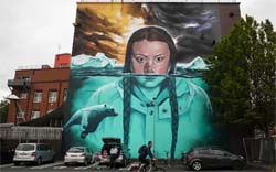 Mayıs 2019'da, sanatçı Jody Thomas, Bristol'deki bir duvara 50 fit yüksekliğinde bir duvar resminde Thunbergi çizdi. Yüzünün alt yarısını yükselen deniz suyunun altında görünür şeklinde.