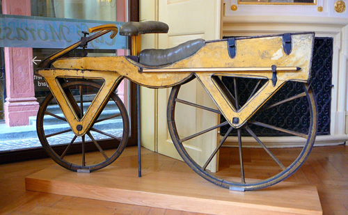 Bu iki tekerli yürüme aracı ilk kez 12 Haziran 1817 tarihinde Mannheim şehrinde, tanıtıldı. Karl Drais tahtadan yaptığı pedalsız aracın selesine oturup ayaklarıyla yeri iterek koşmaya başladı. ‘Test sürüşü' başarılı geçmiş ve modern bisikletin ilk ‘prototipi' doğmuştu.