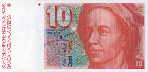 1979 – 1996 yılları arasında İsviçre kâğıt paralarının üzerinde Leonhard Euler’in resmi kullanıldı.